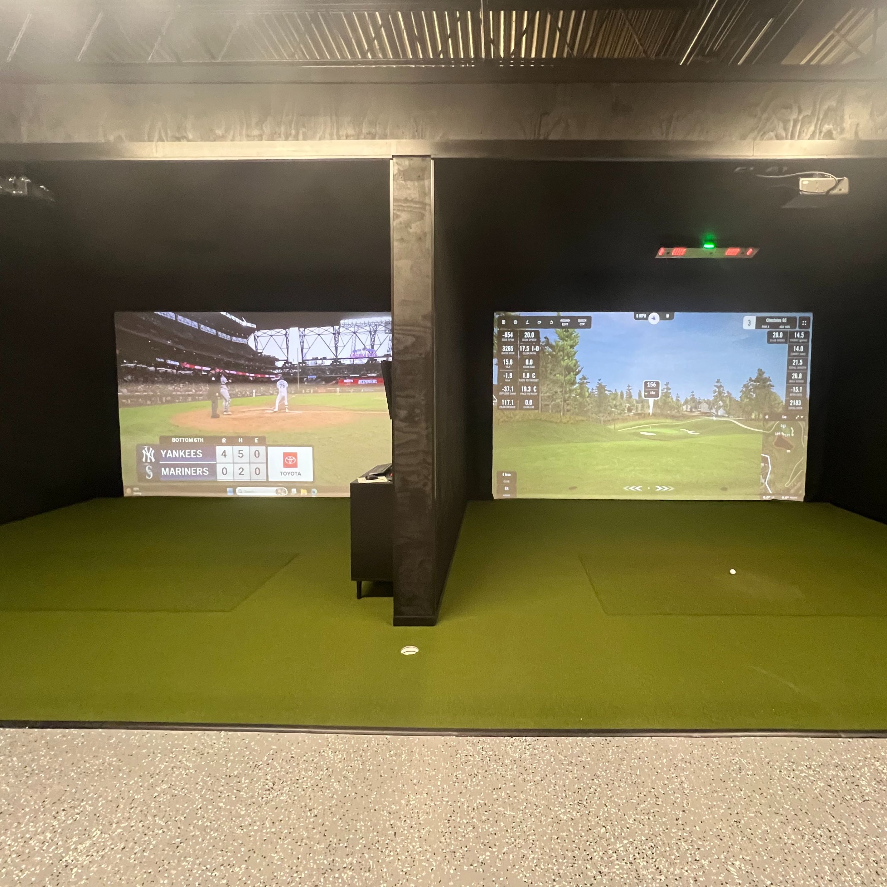Step into a 2 bay private sim setup where you can play, practice, or compete without waiting, crowds, or pressure. Everything is setup for your convenience and consistency. Right down the hall you've got Remedy Whiskey and Bourbon Distillery and McAvoy's Cafe, grab a drink or grab some food without even leaving the building. it turns a quick session into a full night out or an easy way to spend a few hours without bouncing between places! For anyone with kids there's a built in solution with Ghost Athletics! It is an amazing gymnastics gym that gives them a place to burn energy, stay active, and enjoy being there. Ghost golf is designed to remove friction, everything you need is in one spot: play, relax, eat, drink, and keep everyone having a good time!
